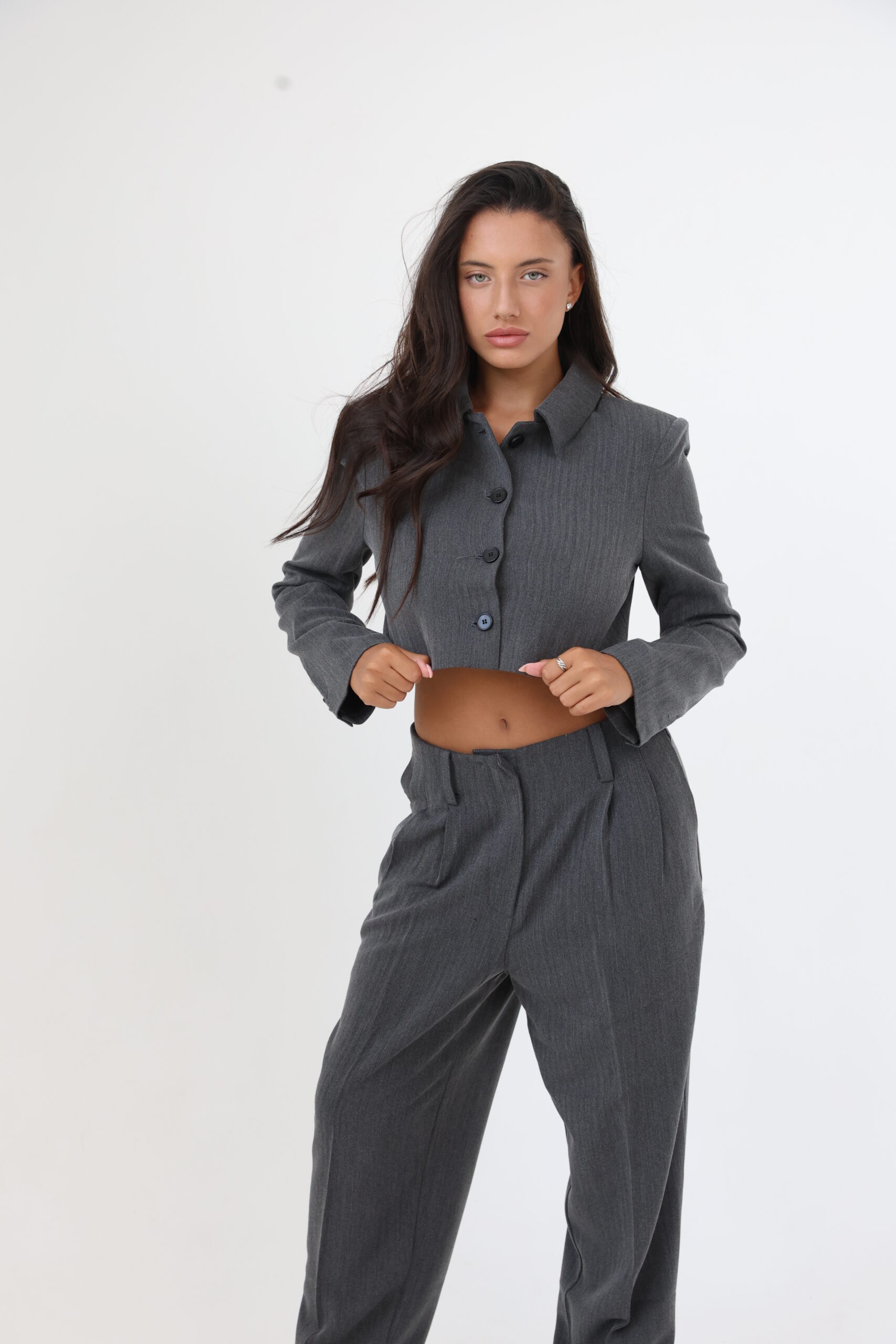 ז'קט קצר בגזרת קרופ נסגר בכפתורים