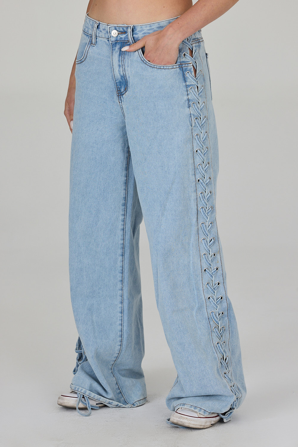 ג'ינס רחב עם חיתוך צד ייחודי ג'ינס בגזרה רחבה עם חיתוך צד בשזירה ייחודית שמעניק מראה טרנדי ונוכחות יוצאת דופן. משתלב בקלות עם קרופ, טופ או חולצה מכופתרת – לטאץ’ אופנתי מדויק ובלתי נשכח.